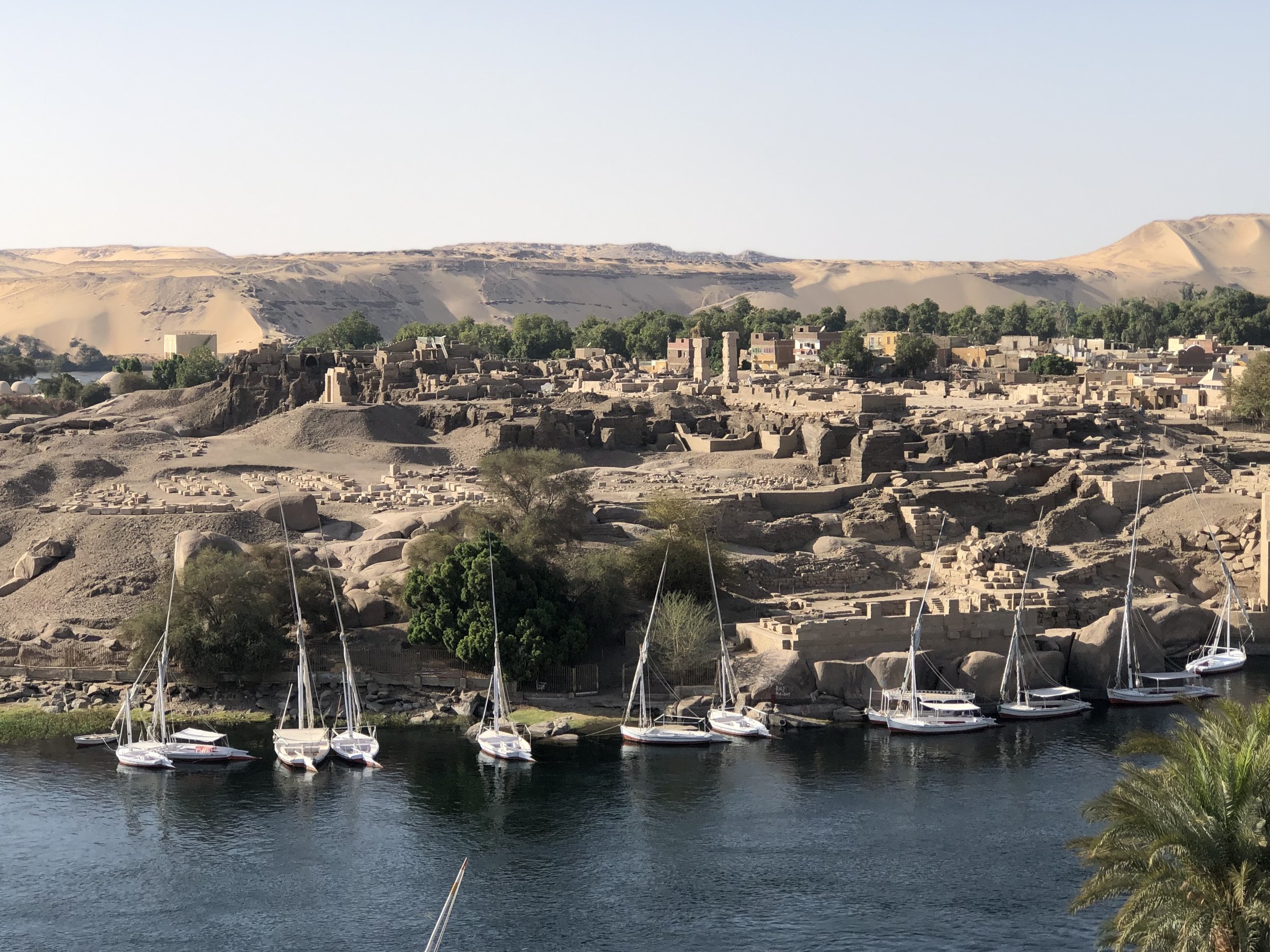 Ruins of the temple on Elephantine Island can be seen across the Nile