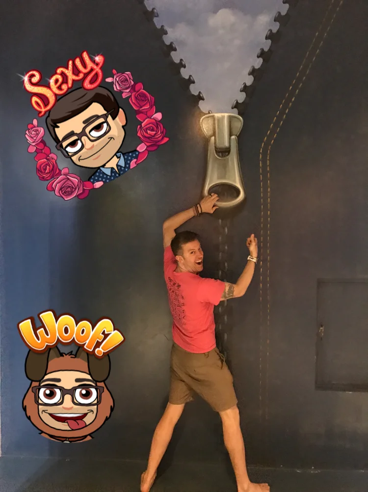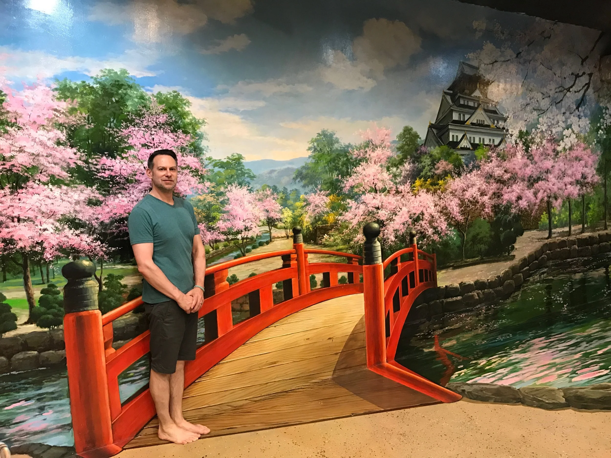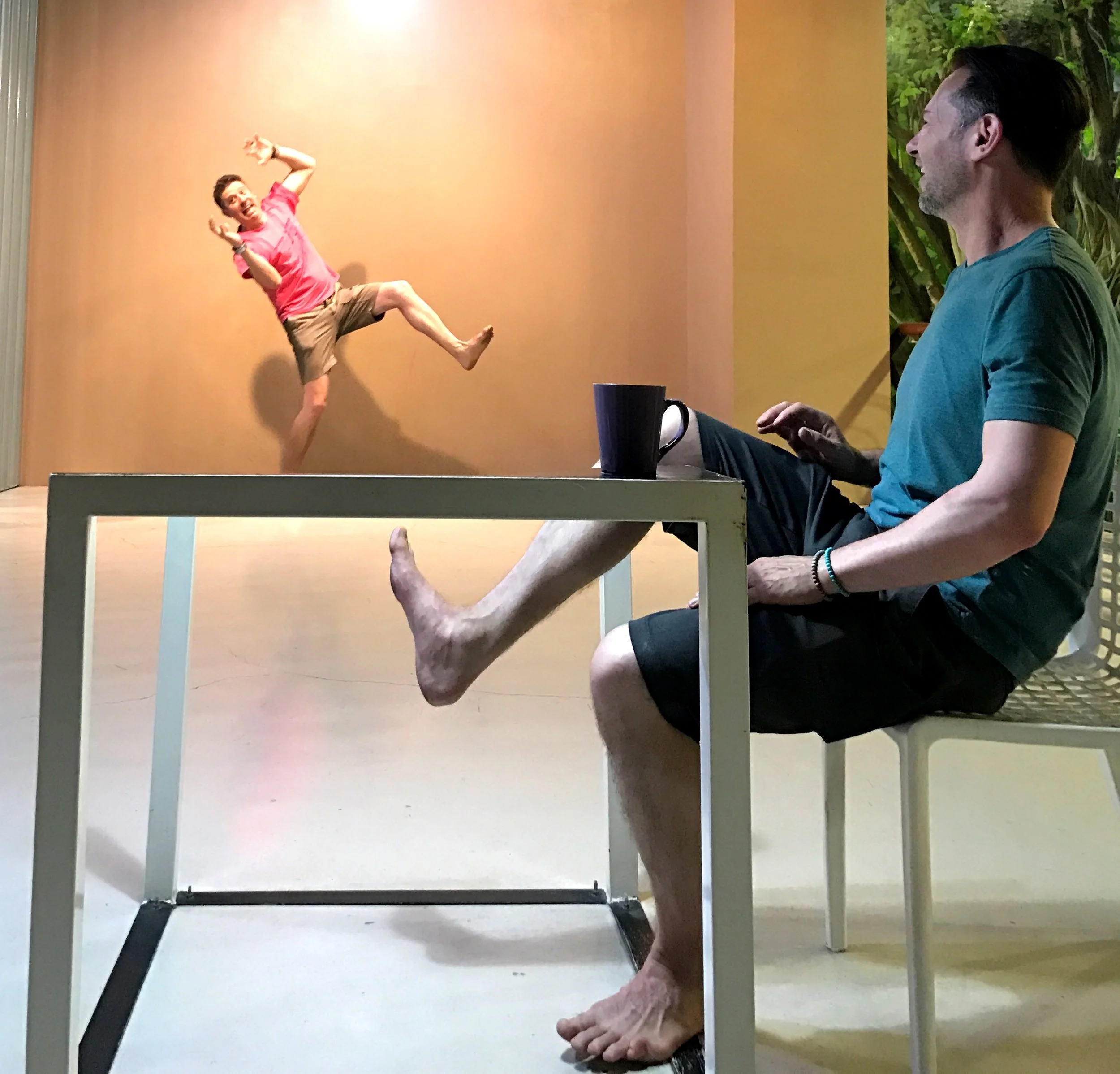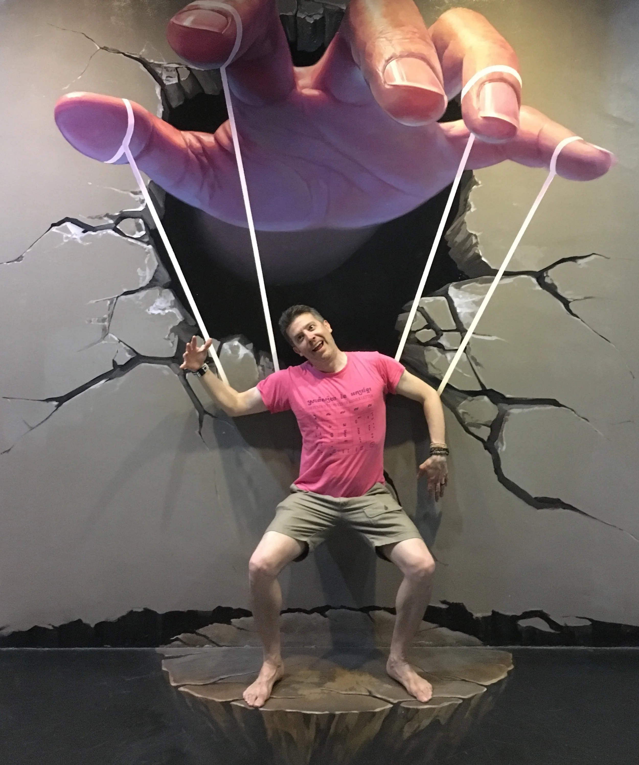But what are the pictures everyone asks us about? The goofy trompe l’oeil photos we took at Art in Paradise. And really, who could argue? They’re mind-blowing. They’re hilarious.