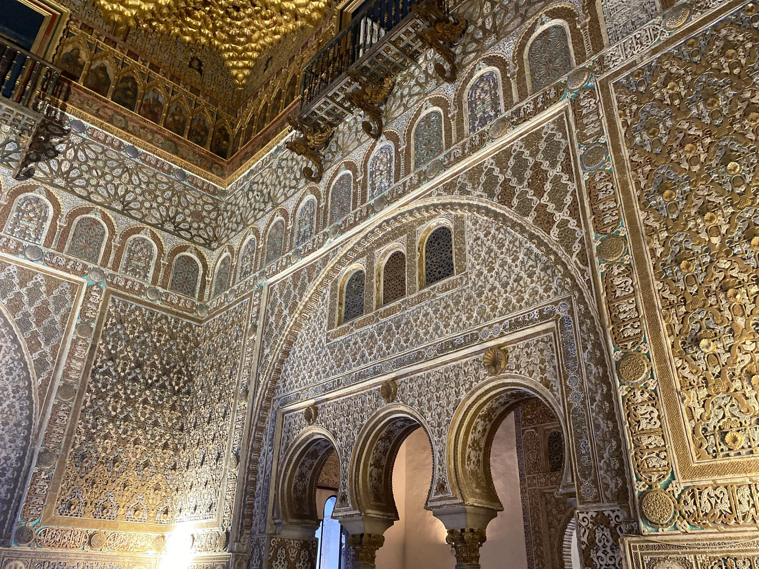 The Mudejar Palace at the Real Alcázar of Sevilla with intricate stucco details