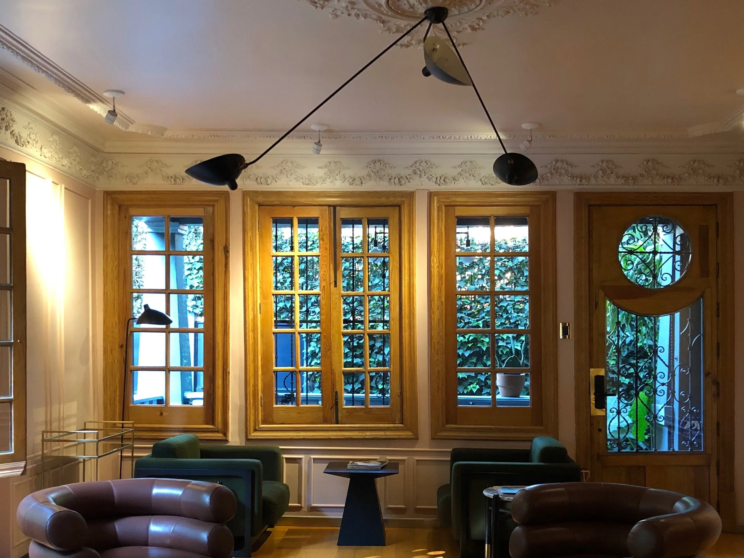 (Make sure to check out the super-chic bathroom with its oxblood channel tufted wall panels and illuminated vanity mirror located next to the reception desk — you’ll thank me later.)