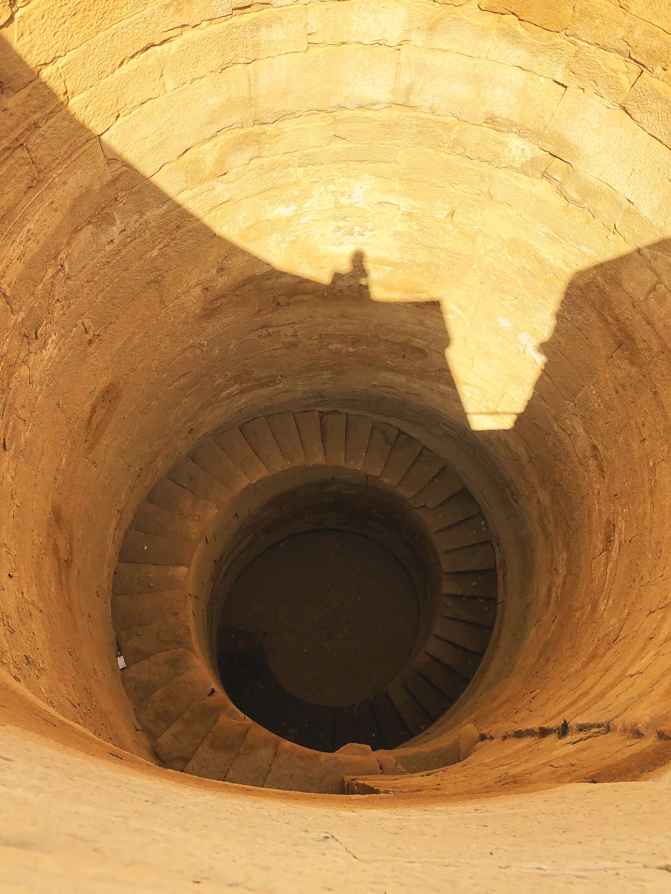 Off to the left, if you’re facing the entrance, are the remains of a nilometer, a structure somewhat reminiscent of the stepwells of India, used to predict the flooding of the Nile. I peeked my head over the edge, but even with my feet firmly planted and my body secure on the stone edge, vertigo made my head spin.