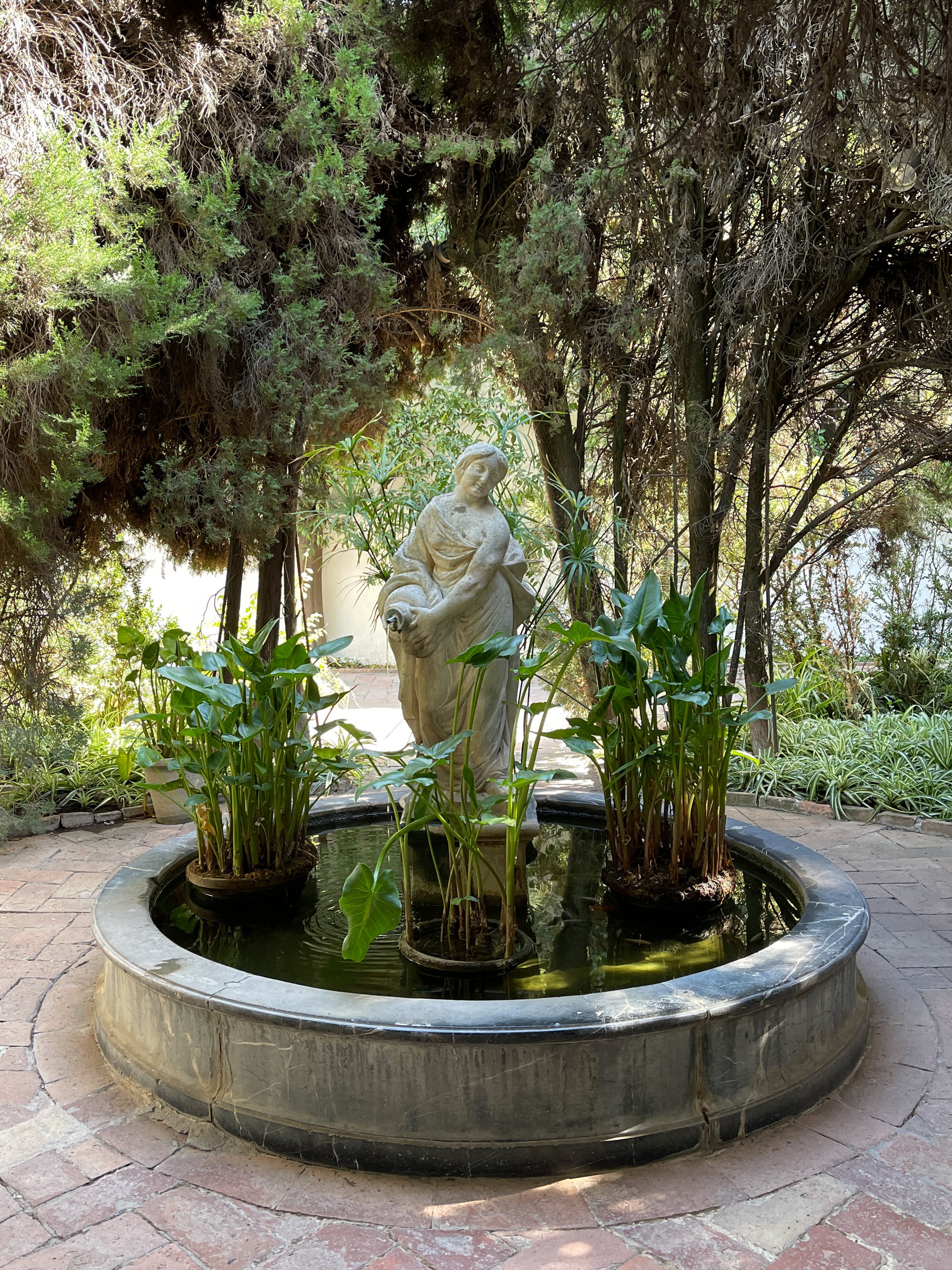 The pool is a more recent addition, transferred to its current location from the nearby Courtyard of the Well in the 1980s. Pools have essential roles in Arabic gardens, aside from offering picturesque reflections: Sunlight aerates and oxygenates the water, which, at Viana comes from the well, before it’s used in irrigation.