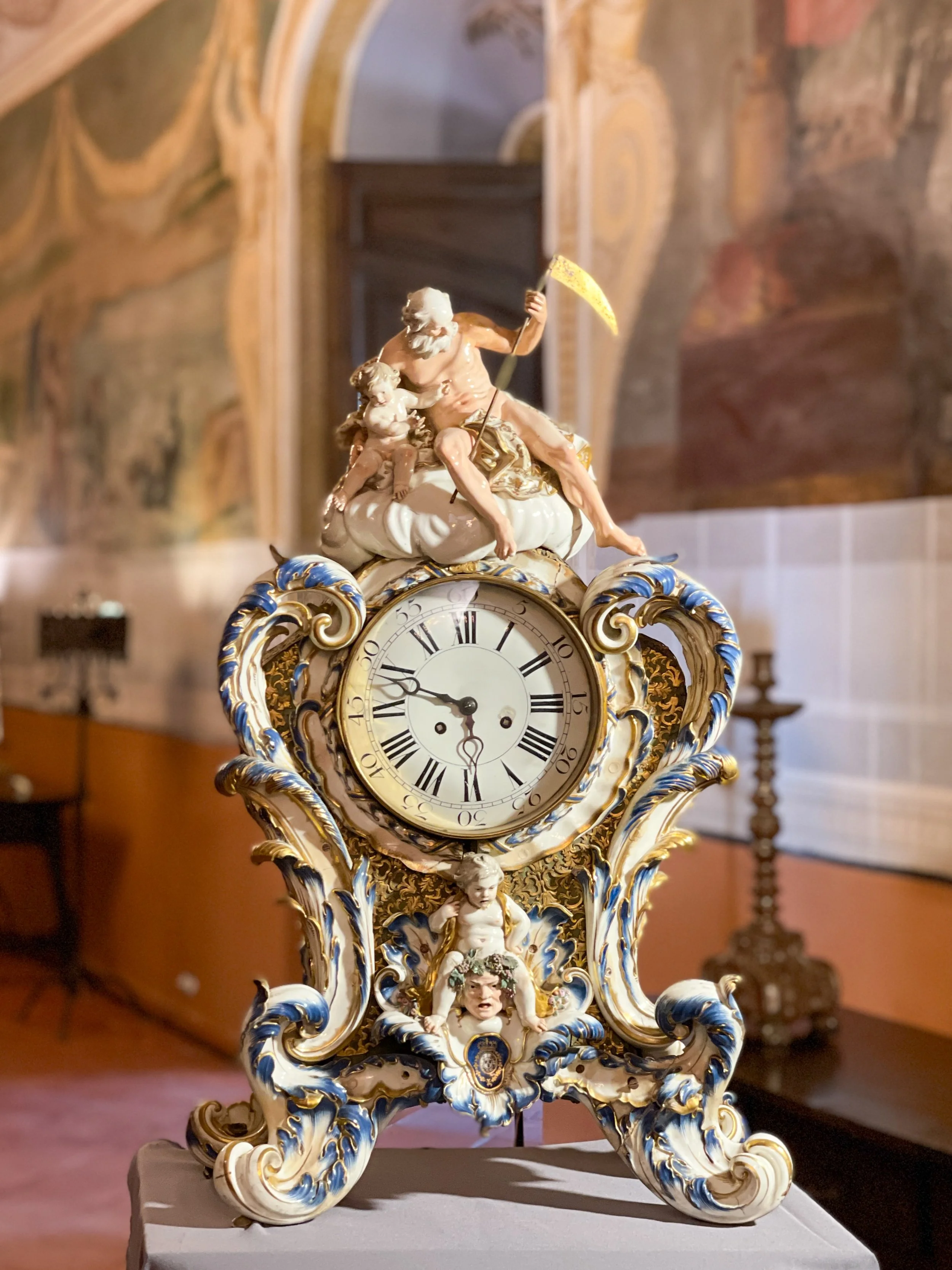 This whimsical Baroque clock was one of the more distinctive pieces we saw at the Palacio de Viana.
