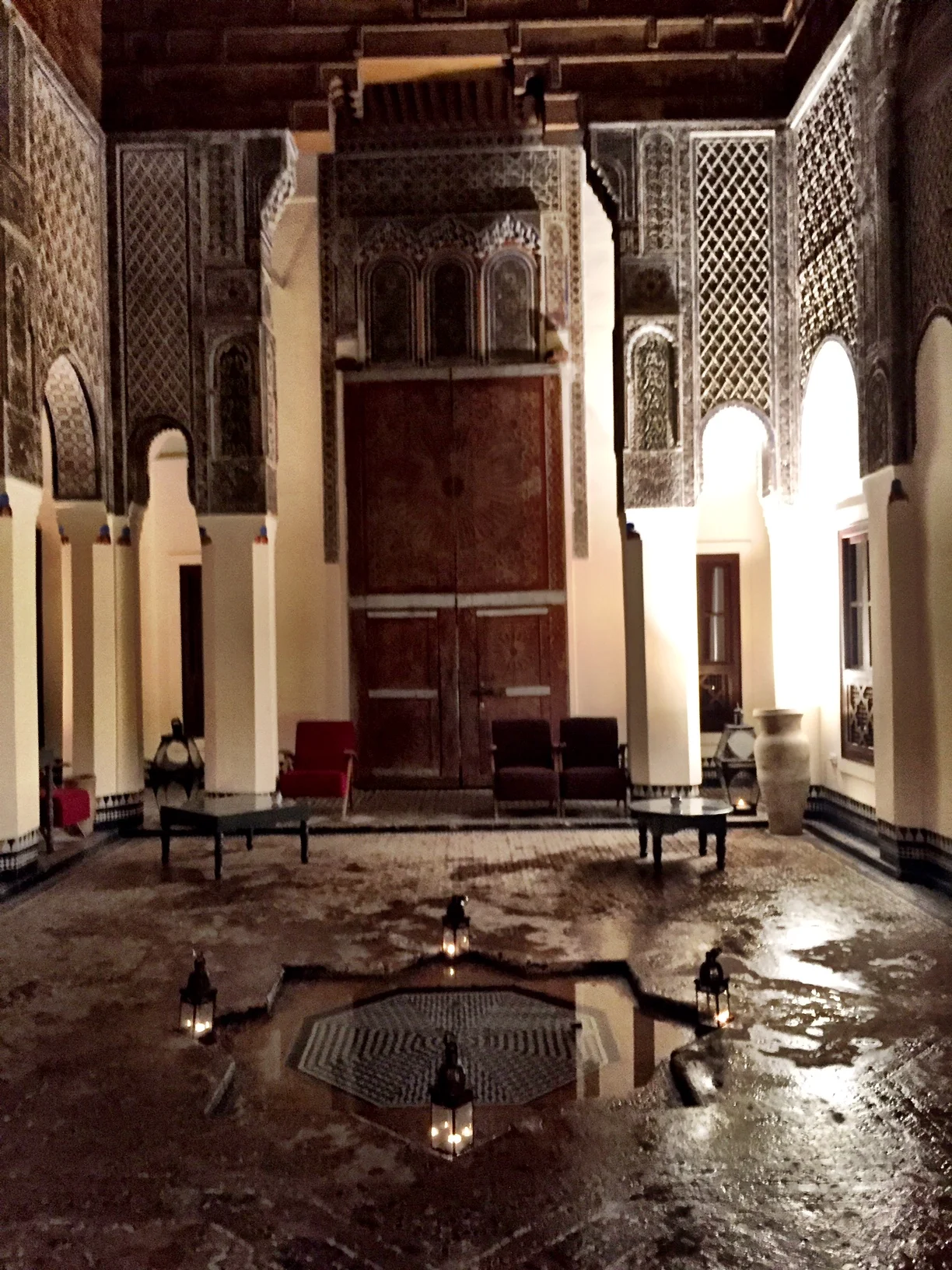 We had quite a time getting to Fès, and we didn’t arrive until the middle of the night, being led by a young boy through the maze of the medina and chased by our taxi driver.