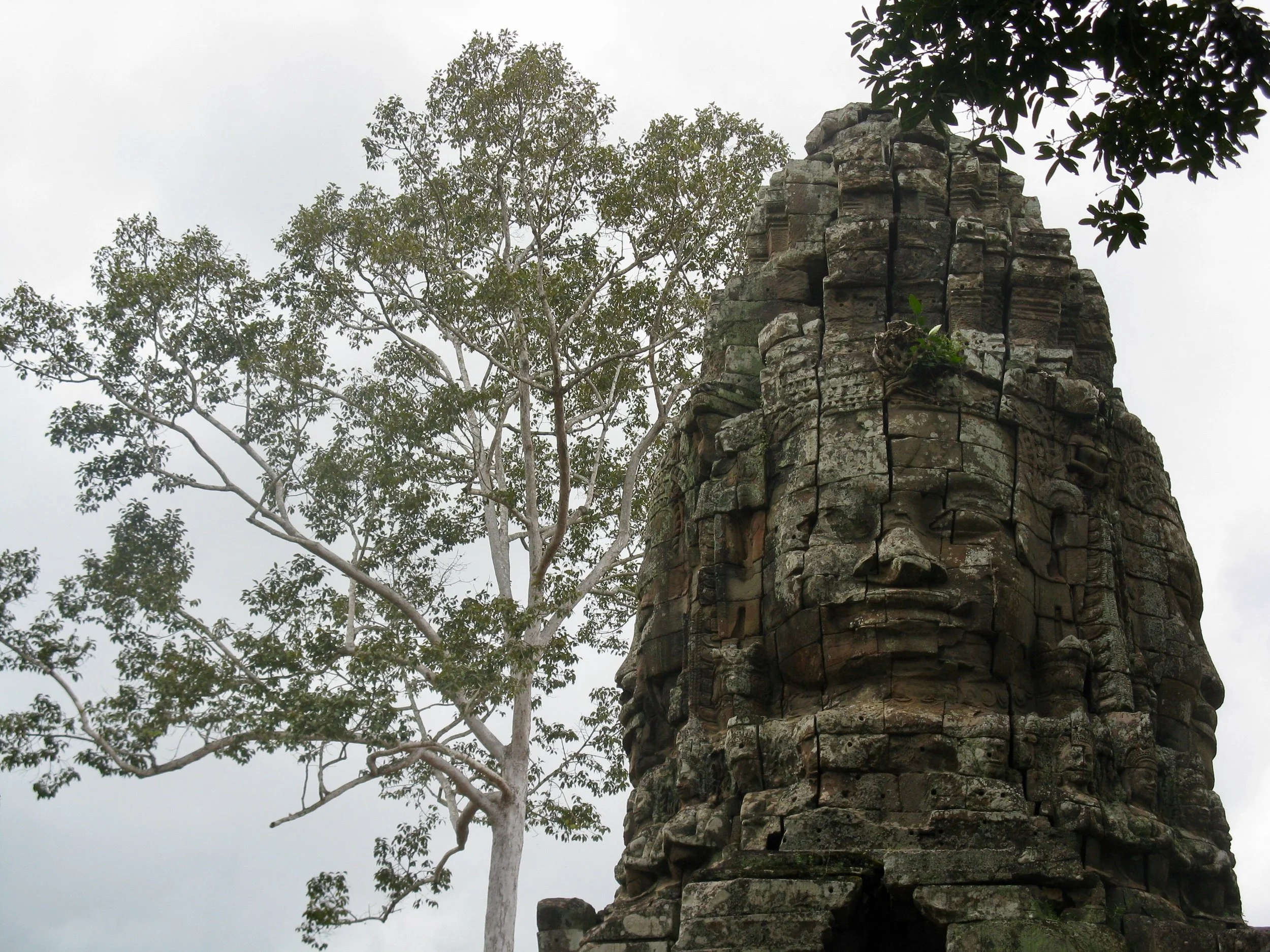 The western entrance pavilion contains a towering gate, with four large serene faces overlooking the cardinal directions
