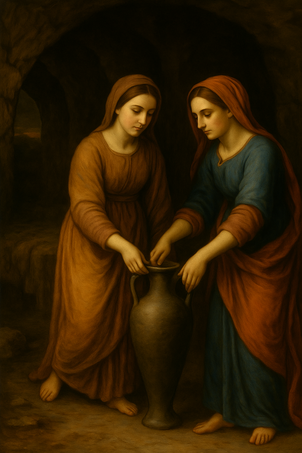 Lot steps outside and does the unthinkable. “I beg you, my brothers, do not act so wickedly. Behold, I have two daughters who have not known any man; let me bring them out to you, and do to them as you please” (Genesis 19:7–8). In protecting his guests, Lot offers his own innocent daughters to the mob. It’s one of the Bible’s most horrifying moral reversals: The sacred code of hospitality is upheld by sacrificing family.