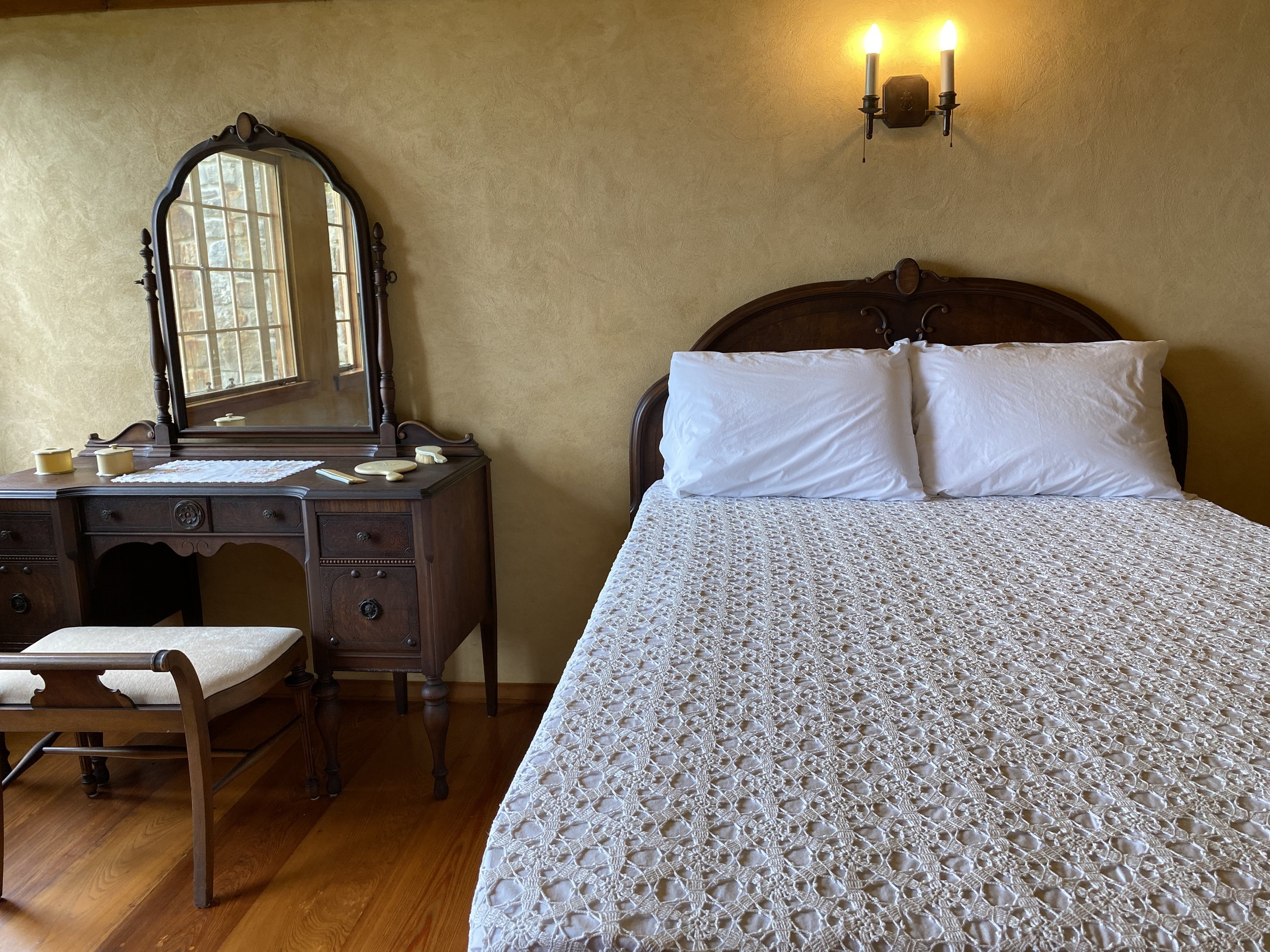 After snapping a few photos outside, Wally and I ducked into the gift shop at the back of one of the duplexes currently undergoing restoration. From there we made our way to the front room to join our tour group and meet our docent, Rhonda. Once everyone was settled in, she broke the ice by asking where we were all from, and to our surprise, one family had traveled all the way from Italy.