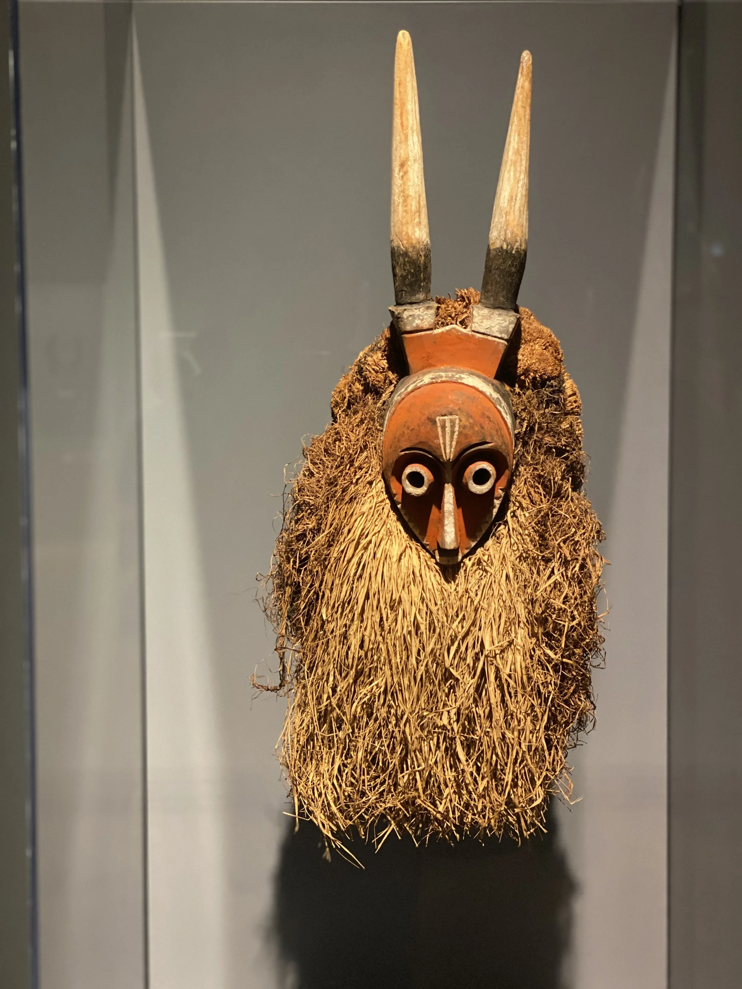 This ngolo mask from the DRC features antelope horns to convey courage, while its protruding eyes signal aggression in the hopes of discouraging outsiders from approaching a boys’ training camp.