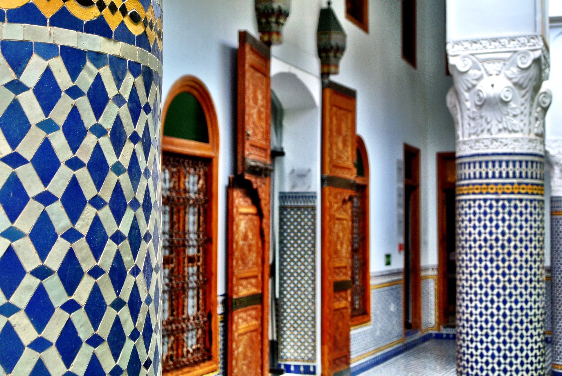 The massage beds as seen through gauze