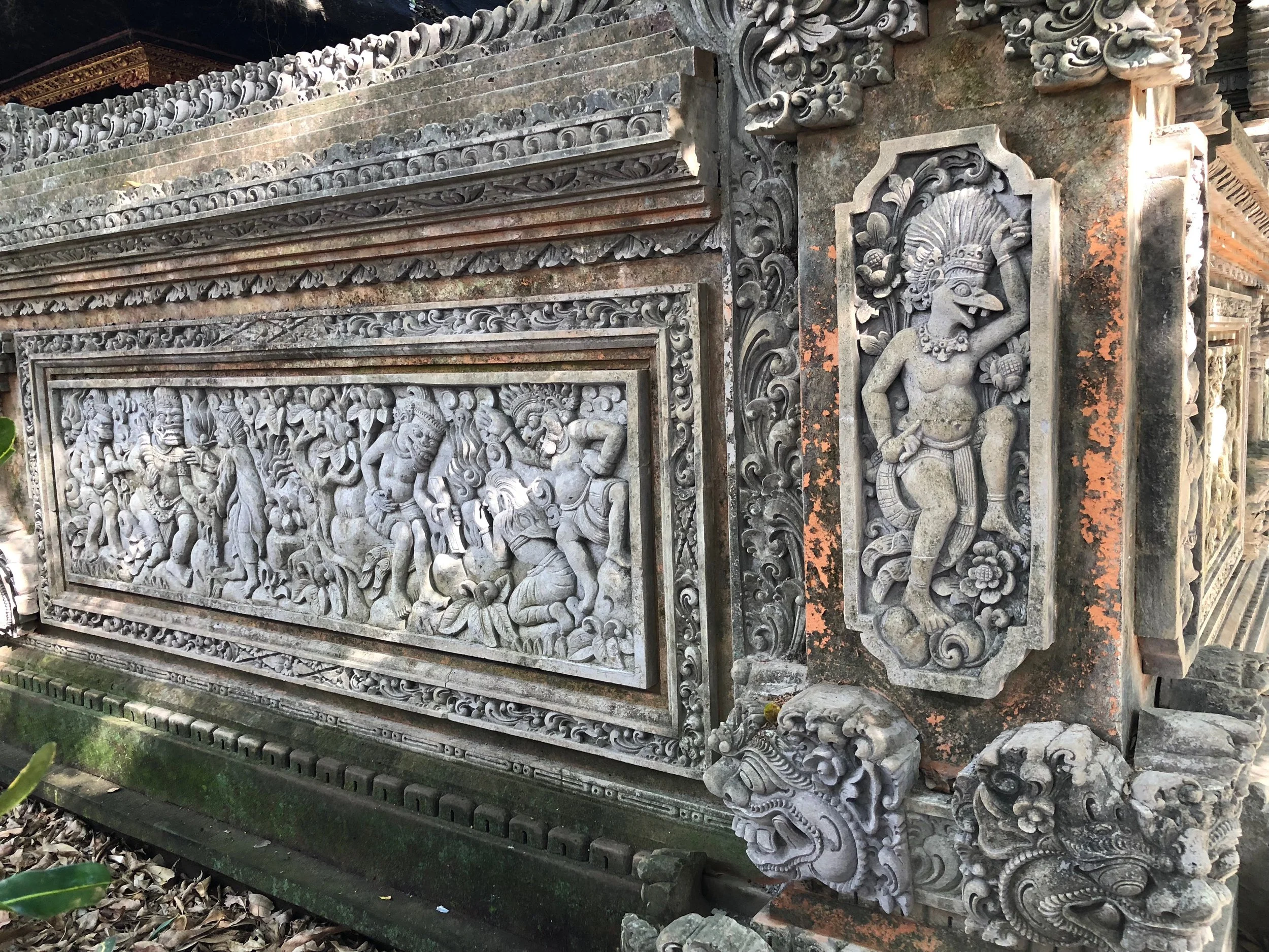 You can skirt around the exterior of the pura dalem and admire the bas reliefs