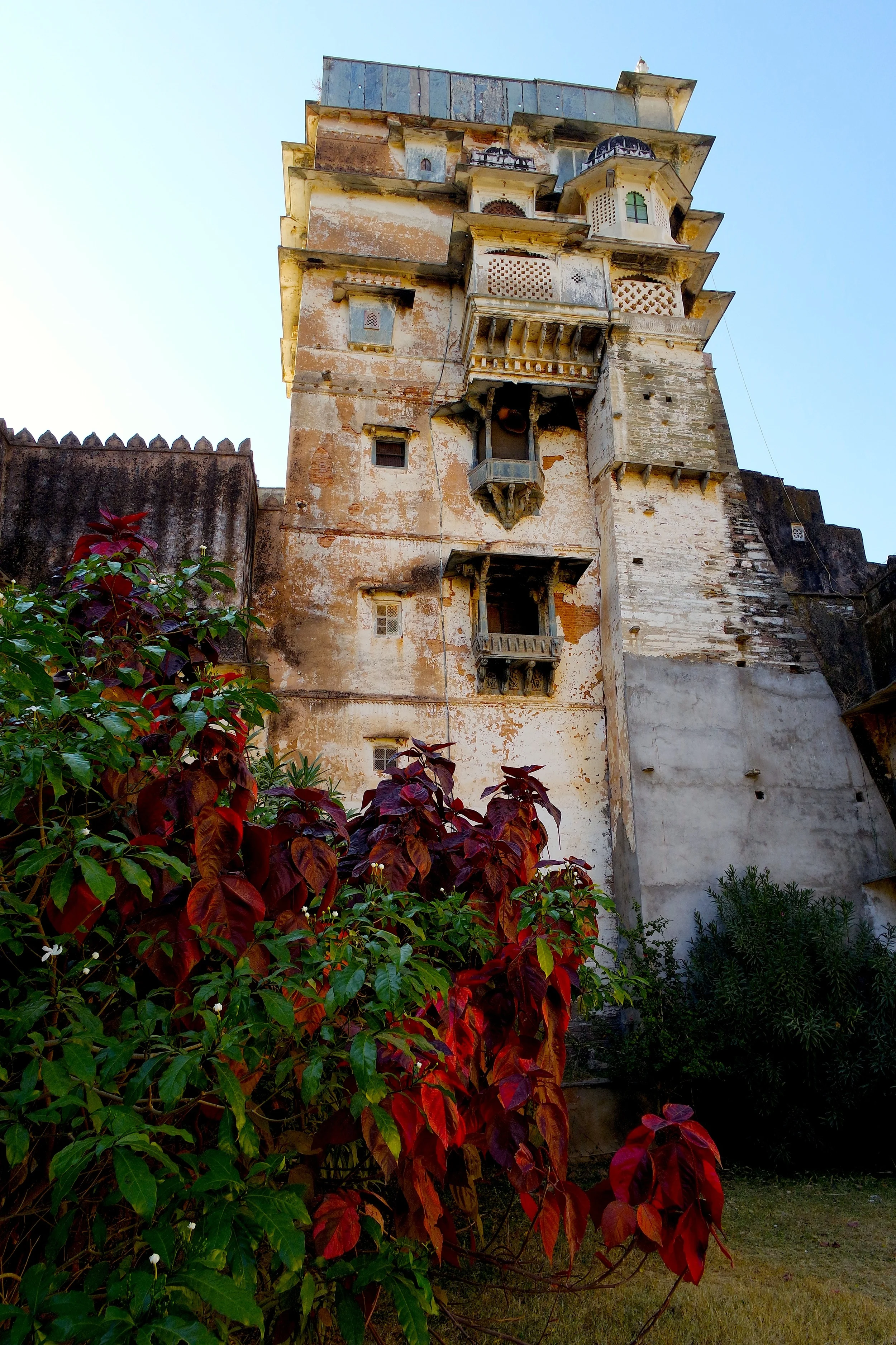 A single staircase connects all seven floors of the Juna Mahal, or Old Palace