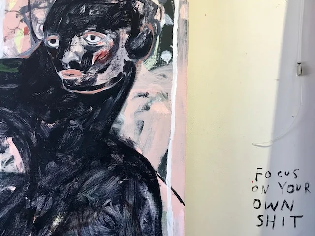 A work in progress in Natisa’s studio, with some good advice she’s written on the wall