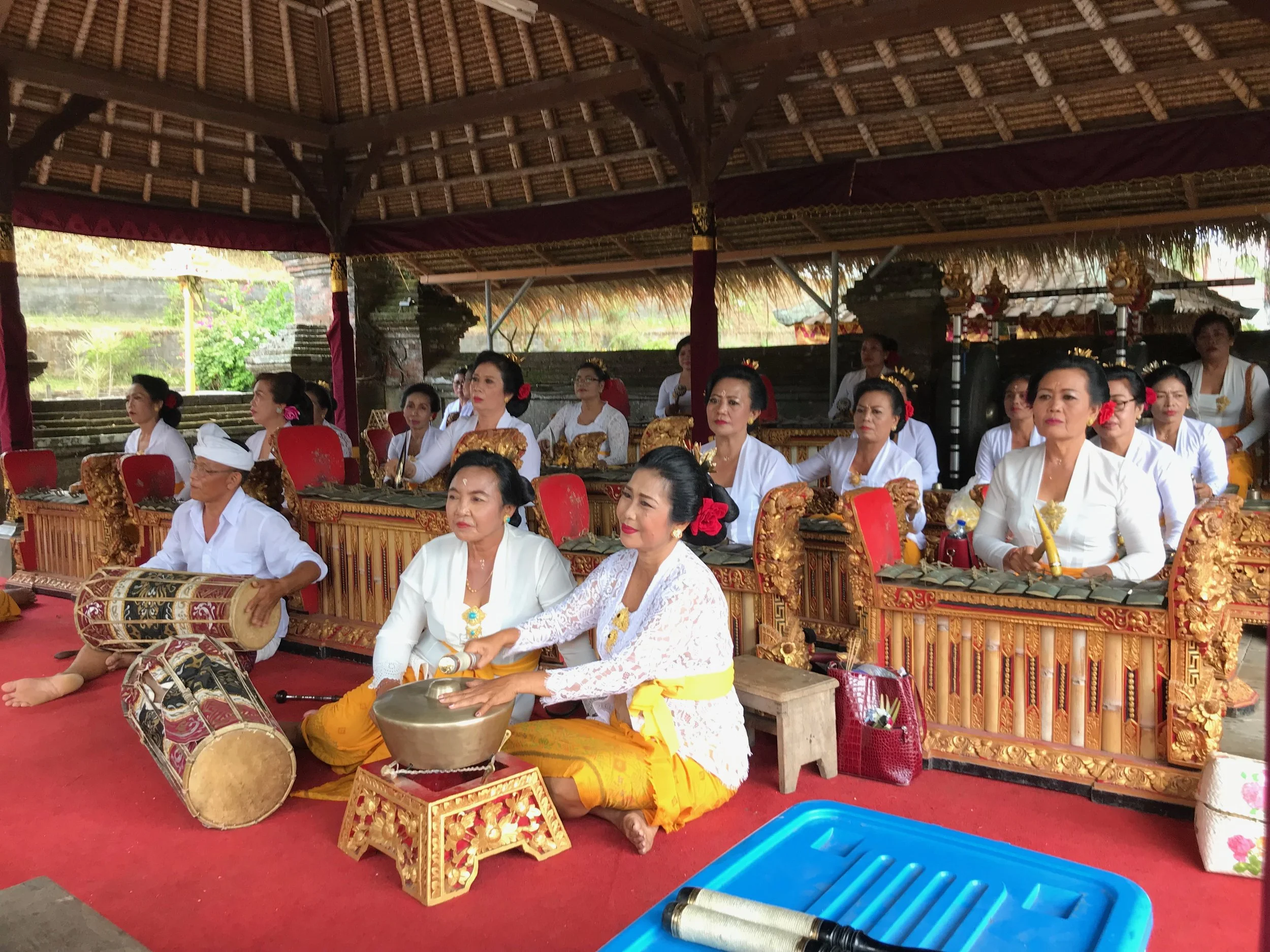 In one corner of the temple complex, we stopped to listen to an entirely female gamelan troupe. I had always heard of the percussion-heavy, xylophone-like instruments being played by men and wondered if this was a new phenomenon.